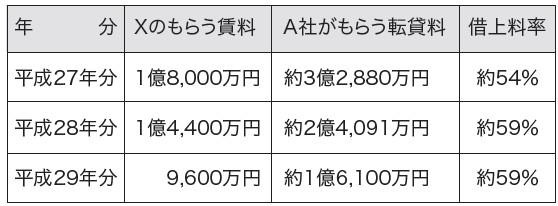 ④この間、XがA社から受け取った賃料と、A社が第三者から得た転貸料には以下の差があった(表参照)。Xはこれに基づき所得税を申告した。