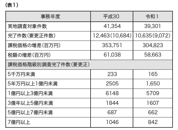 表1のとおり、1億円未満の実地調査件数は大幅に減少しているものの、3億円以上の調査件数の減少はそれほどでもない状況だ。