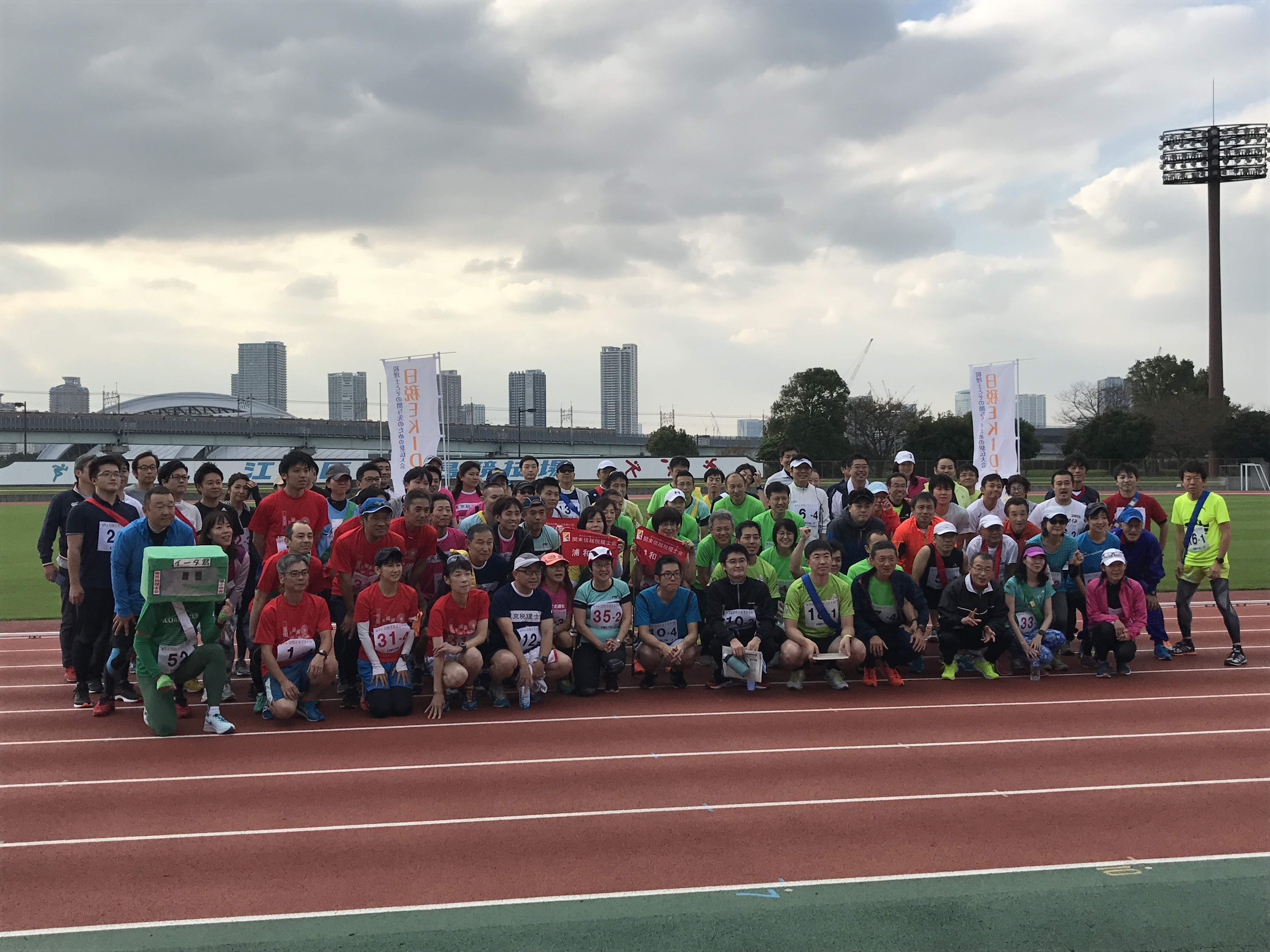 混成の部の優勝争いは更に大接戦。競技場に入るまで先頭の2チームが争い、ラストスパートで前に出たしぶ走会Bが優勝。横浜中央ペヤングと続き、3位には四谷支部Dが入りました。