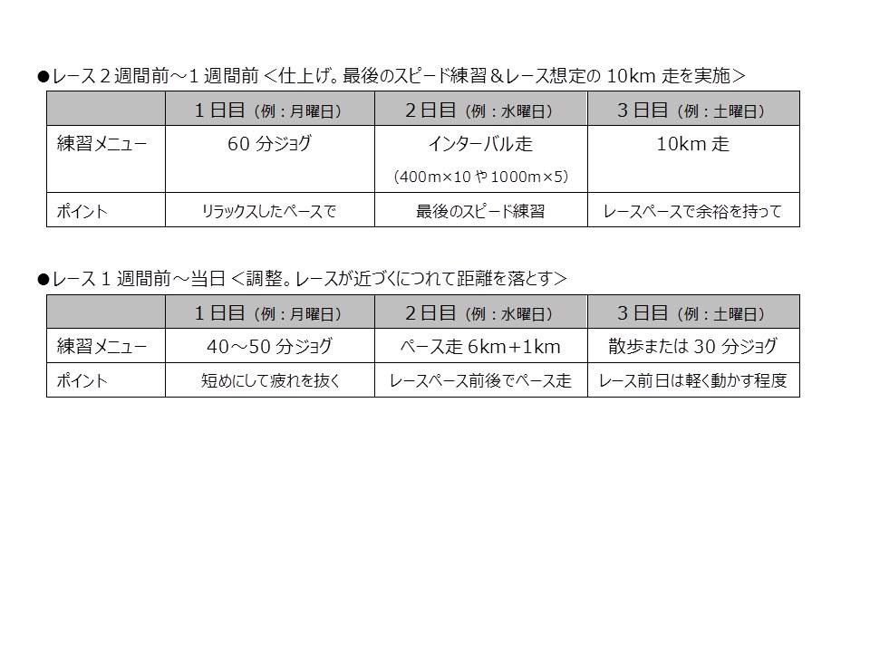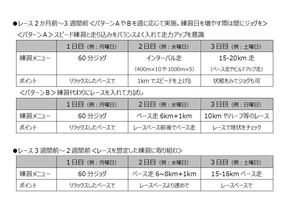 2.練習メニュー(例) ※週に3~4回走ることを想定