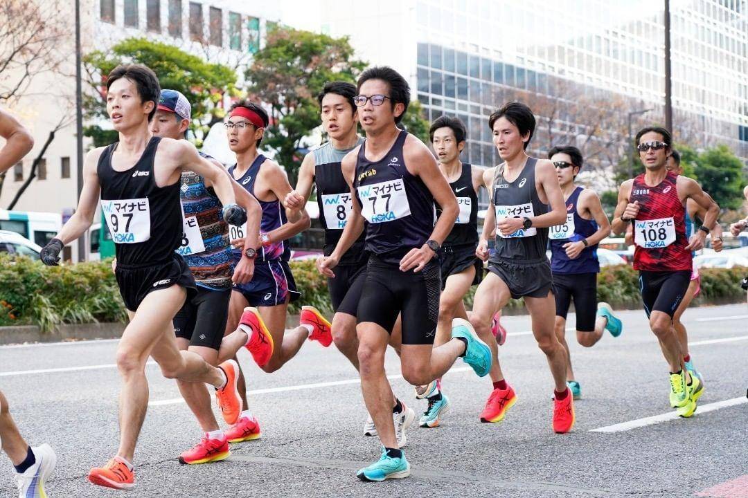 当日は気温が10~15℃、日差しもあり、風もあまりない絶好のコンディション。先頭集団は2分58秒/kmというハイペースで進むも、中間点以降は絞られていき、30km以降はペースを落としながら粘る展開に。マイケル・ギザエ選手(スズキ)が2時間07分台で優勝、2位の細谷選手(黒崎播磨)が2時間08分台と、東京マラソンやびわ湖毎日マラソンと比べると記録面では少し物足りない結果になりました。