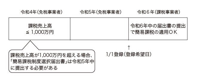 令和4年中の課税売上高が1,000万円以下の個人事業者が令和6年1月1日からインボイスの登録事業者となる場合(届出書の事後提出が認められるケース)