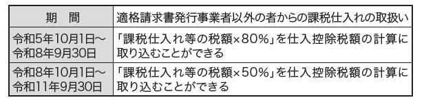 免税事業者や消費者のほか、課税事業者でも登録を受けなければインボイスを発行することはできません。そこで、インボイスがない課税取引については、期間の経過に応じて一定の金額を仕入税額として控除することができます。