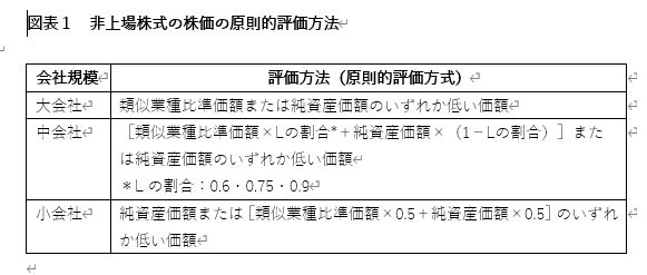 図表1のとおり、非上場株式の株価はその株式を発行する会社(以下「評価会社」といいます。)の規模に応じた評価方法により算定されます。