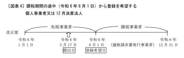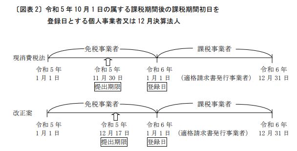 令和5年3月31日の登録申請の期限について柔軟な対応を行い、その上で、令和5年10月のインボイス制度移行後においても弾力的な対応を行うため、次の(2)~(5)の改正が行われます。