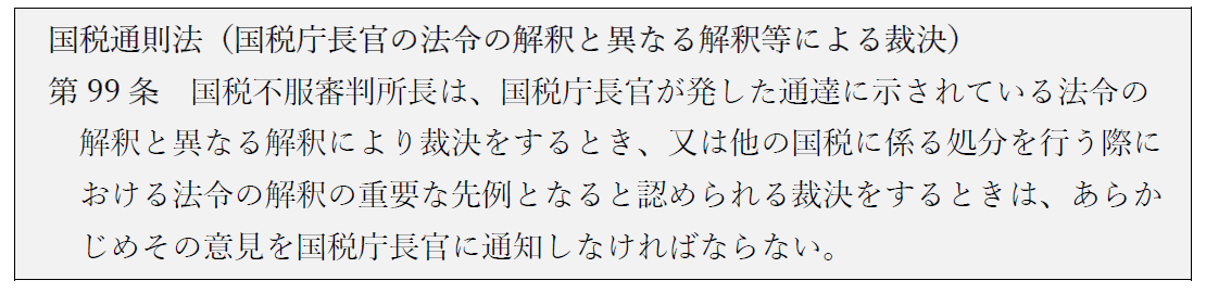 もし審判所が「事務運営指針の『脱漏』の定義は、通則法68 条(重加算税)の隠蔽・仮装の定義と明らかに矛盾しており、本件事務運営指針が法律に違反している」と断定しようとすれば、国税庁⾧官に通知が必要となる。