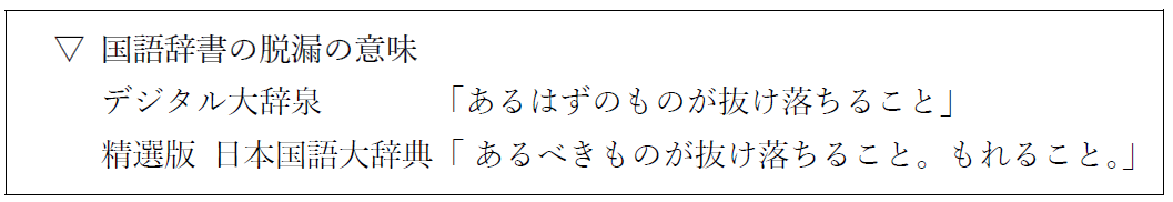 『脱漏』の意味を国語辞典で調べると、そこには故意の意味合いがないことが判る。