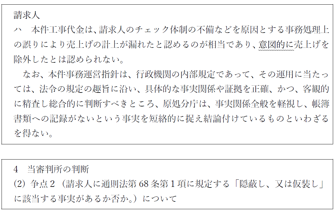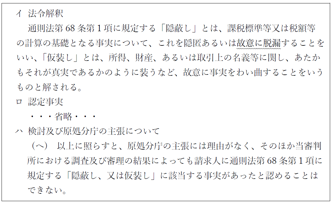 このような通知が行われた形跡はないし、審判所は事務運営指針が法令に反するか否かとの見解も表明していない。つまり、審判所は「事務運営指針が間違っている」と正面から批判するのではなく、事務運営指針は置いておいて、法律の原則に照らせば今回は隠蔽・仮装がない、と判断を下したのではなかろうか。