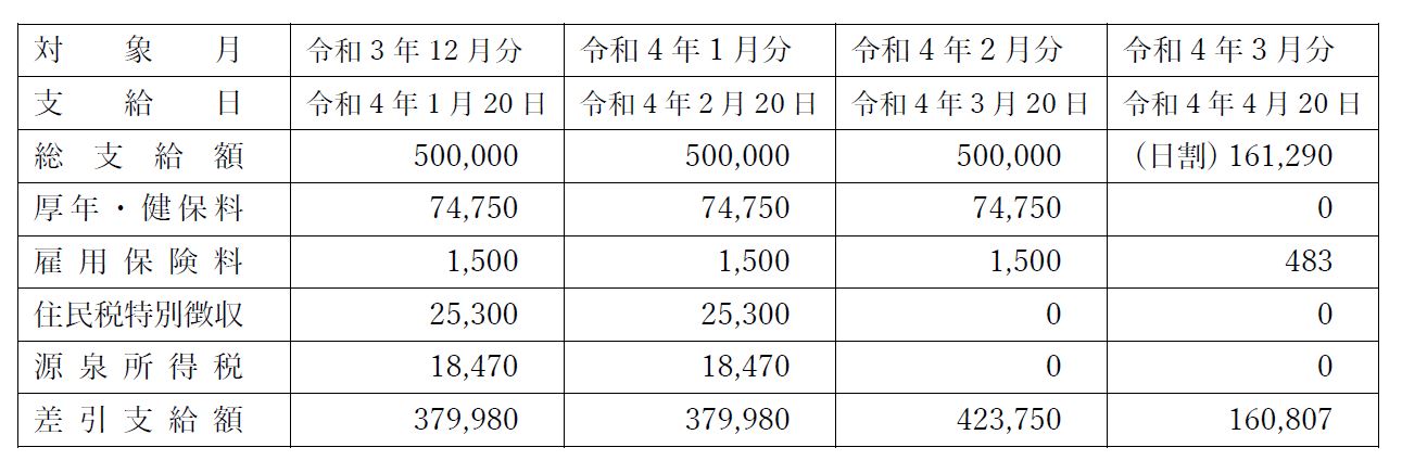 令和4年1月20日、2月20日、3月20日、4月20日の各月の給与支給については 以下の通りとなります。