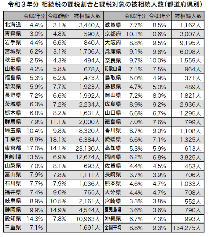 都道府県別 令和3年分相続税の申告状況をチェック!