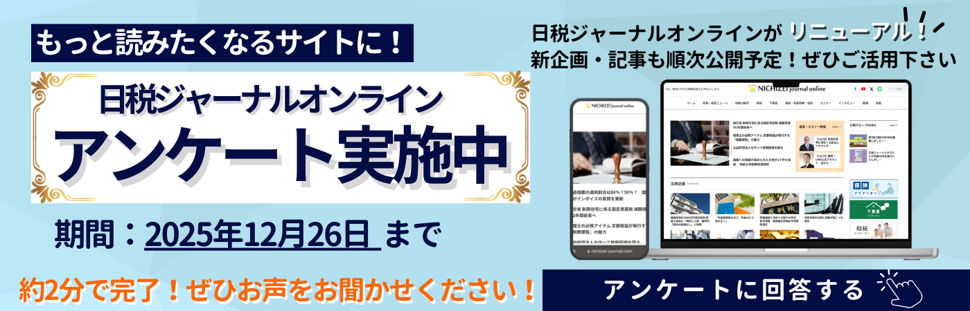 日税ジャーナルオンライン『アンケート実施中!』ぜひお声をお聞かせください【税理士先生・事務所職員様対象】