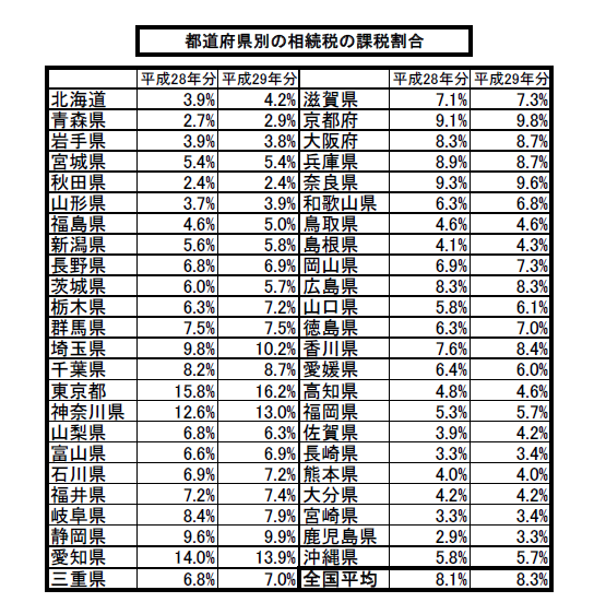 国税庁はこのほど、平成29年分の相続税の申告状況を発表したが、これを都道府県別で見てみると、平成29年中に亡くなった方(被相続人数)のうち、相続税の課税対象となった被相続人数の割合(課税割合)が最も高かったのは東京都の16.2%(平成28年分15.8%)だった。