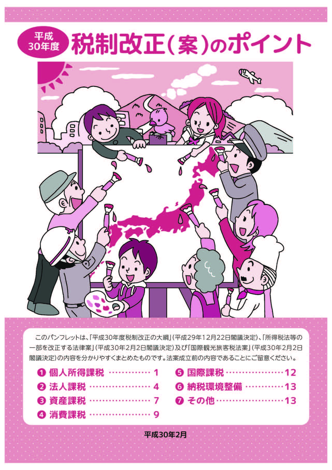 財務省はこのほど、「平成30年度税制改正(案)のポイント」と題したパンフレットを作成し、同省のホームページに公表した。